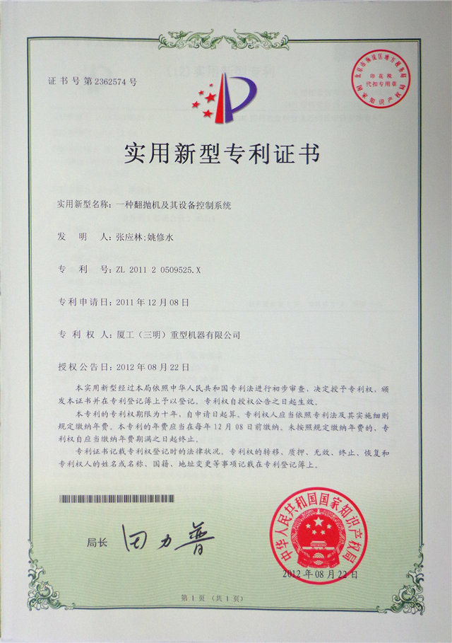 一種翻拋機及其設備控制系統(tǒng)ZL2011 2 0509525