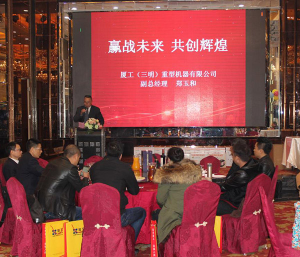 中午12時,答謝會正式開始。廈工三重公司副總經(jīng)理鄭玉和先生首先發(fā)表致辭,表達(dá)了對新老客戶、經(jīng)銷商們的感謝,介紹了公司2018年的銷售政策和經(jīng)營目標(biāo),希望在新的一年里與大家攜手“贏戰(zhàn)未來、共創(chuàng)輝煌”。公司技術(shù)中心主任羅斯進(jìn)先生介紹了廈工三重建企60年的發(fā)展歷程及公司主導(dǎo)產(chǎn)品,銷售公司區(qū)域總監(jiān)吳建盛先生公布了現(xiàn)場訂購優(yōu)惠政策。會議現(xiàn)場,賓主交流融洽,互動熱情,穿插進(jìn)行有獎問答活動,更將現(xiàn)場的氣氛推向高潮